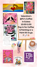 Come get some delicious coffee and watch Camilla Painting a creative canvas live on site, or buy a Paint Kit to go, or get a Painting of Flowers to give your someone special for Valentine's.